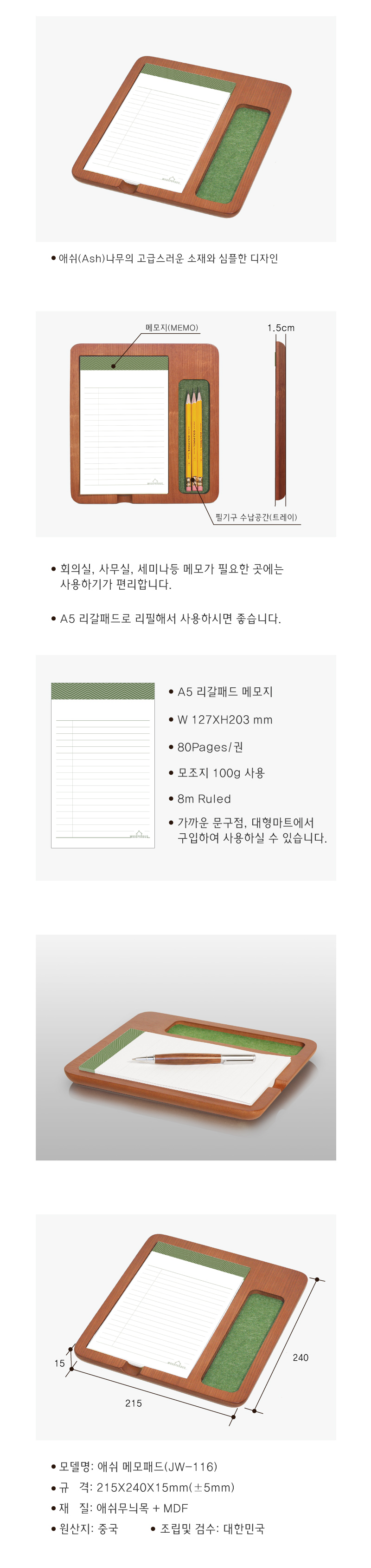 원목 메모패드&필통 JW-116