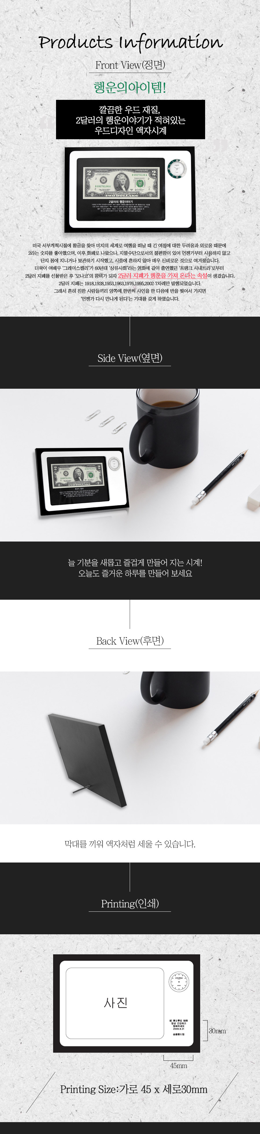 2달러이야기 행운의 우드디자인액자시계 738Q