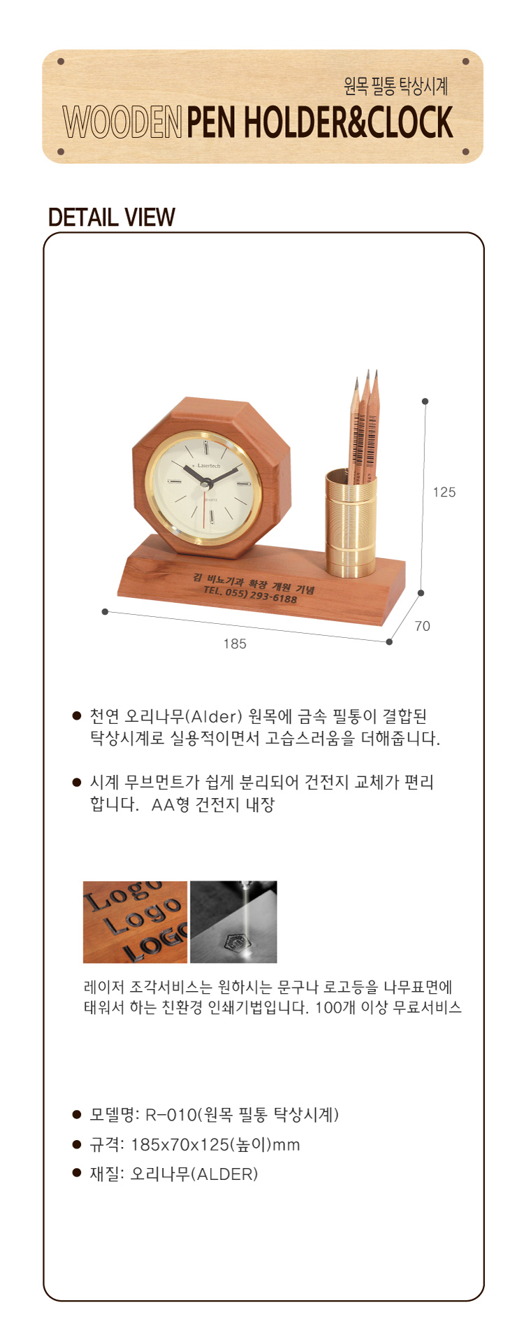 원목 탁상시계-펜홀더 R-010