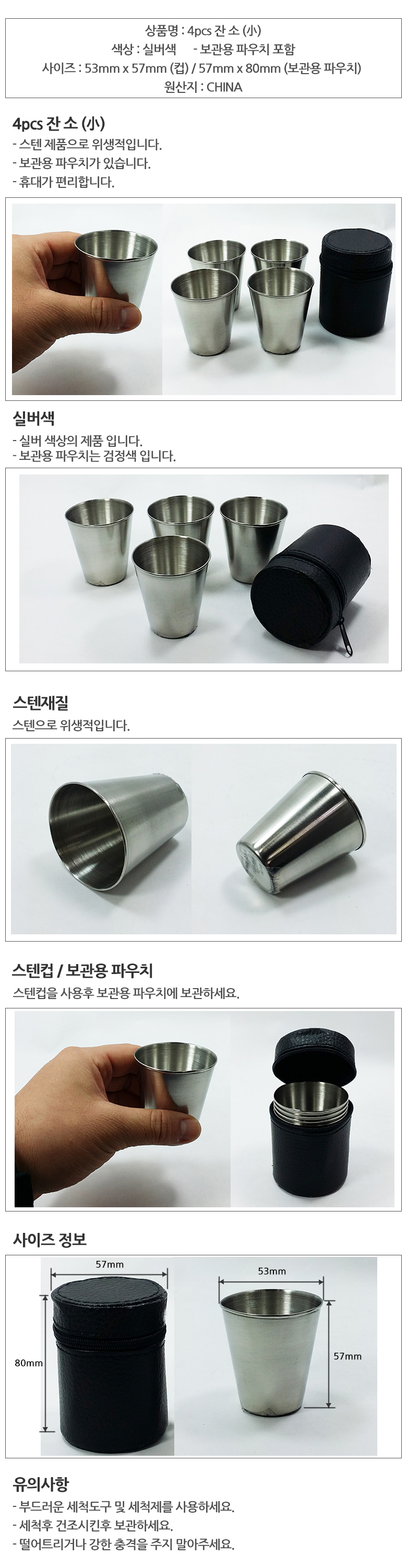 4pcs 잔 小 (보관용 파우치 포함)