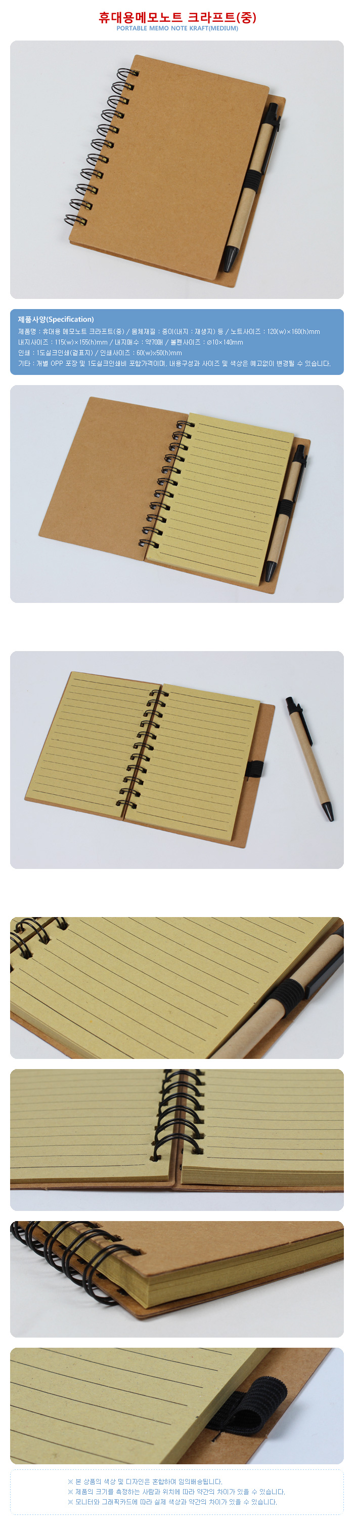 휴대용메모노트 크라프트(중)