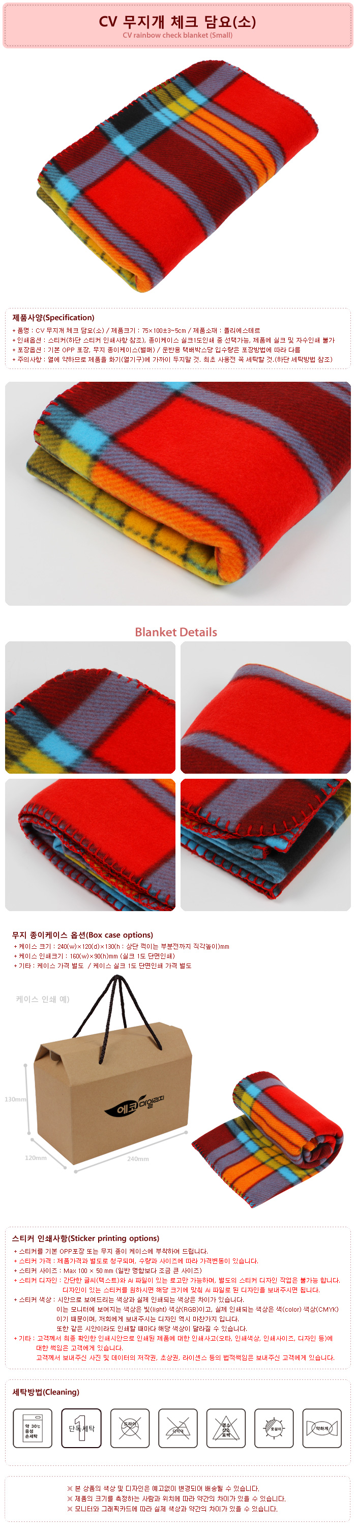 CV 무지개 체크 담요(소)