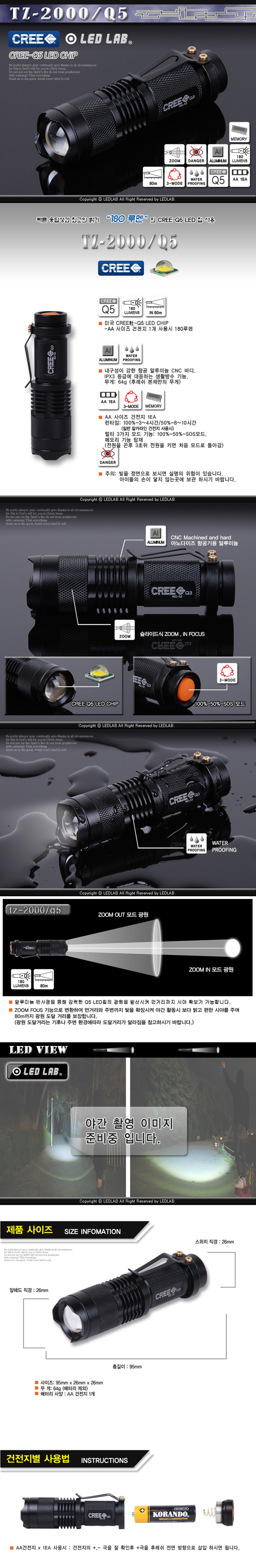 LEDLAB TZ-2000/Q5 줌 랜턴