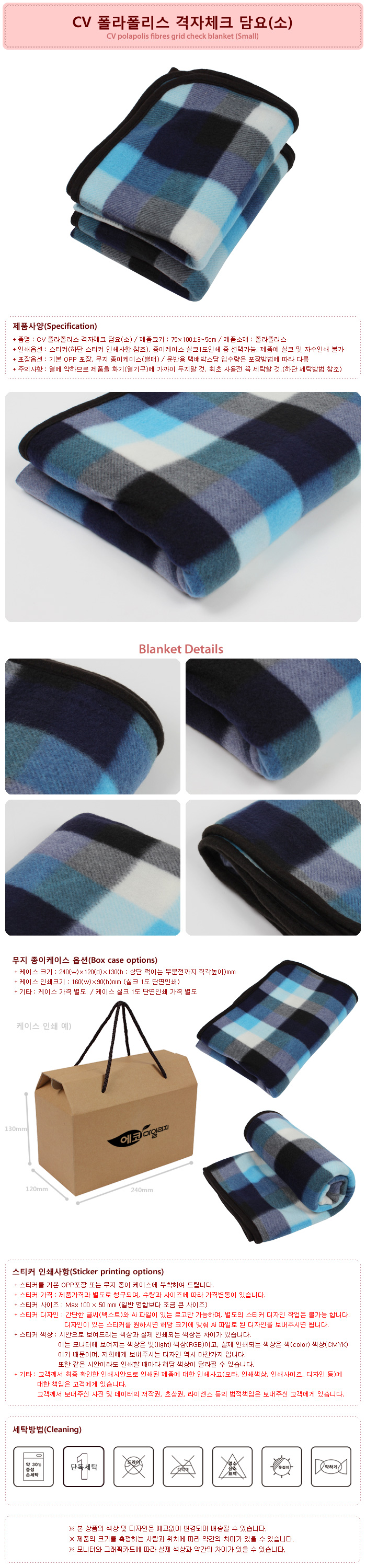 CV 폴라폴리스 격자체크 담요(소)