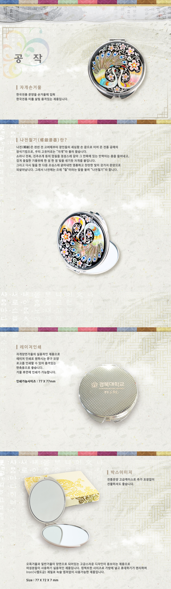 공작,손거울세트,휴대거울,휴대용손거울,손거울,손잡이손거울,나전칠기,예공,예공쉘크래프츠