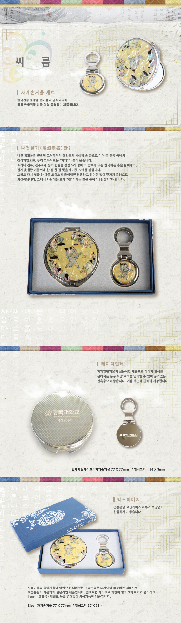 씨름,손거울세트,열쇠세트,열쇠,거울세트,휴대거울,휴대용손거울,손거울,손잡이손거울,나전칠기,예공,예공쉘크래프츠