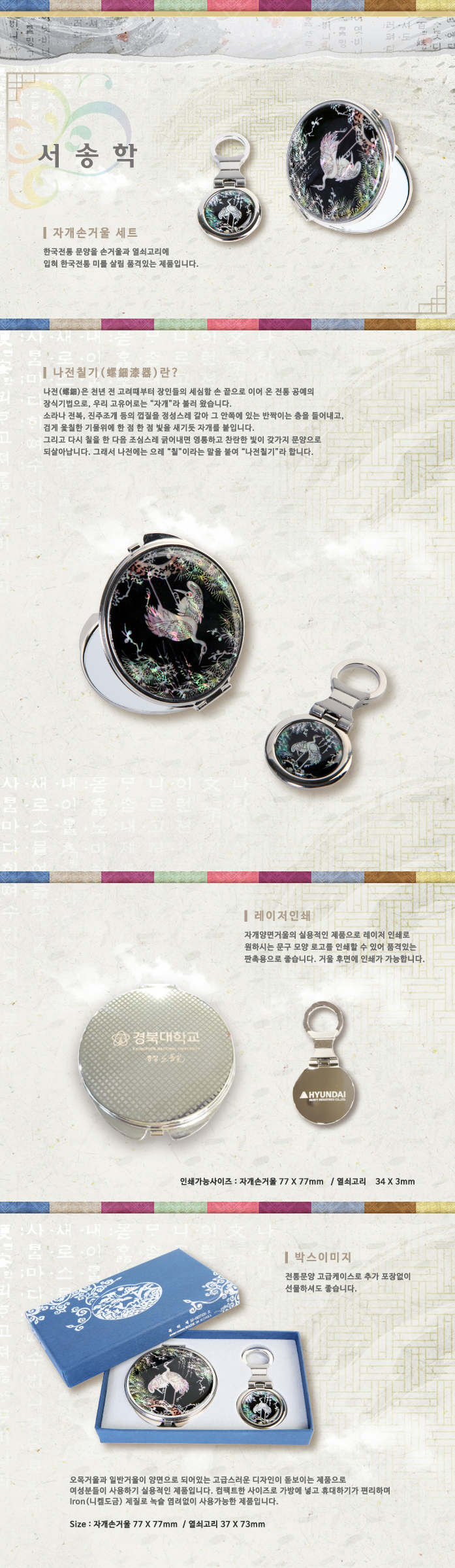 송학,서송학,손거울세트,열쇠세트,열쇠,거울세트,휴대거울,휴대용손거울,손거울,손잡이손거울,나전칠기,예공,예공쉘크래프츠