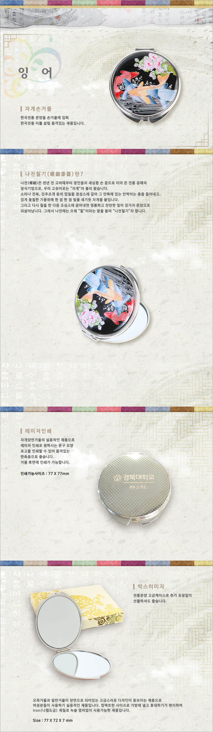 잉어,손거울세트,휴대거울,휴대용손거울,손거울,손잡이손거울,나전칠기,예공,예공쉘크래프츠