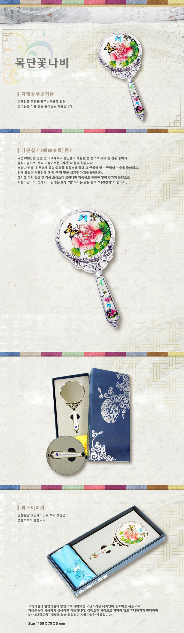 목단꽃나비,자개,휴대거울,휴대용손거울,손거울,손잡이손거울,공주손거울,나전칠기,예공,예공쉘크래프츠