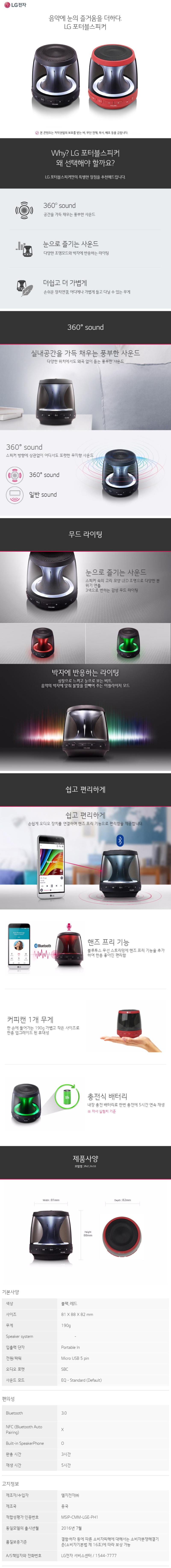 LG PH1 무드 블루투스 스피커