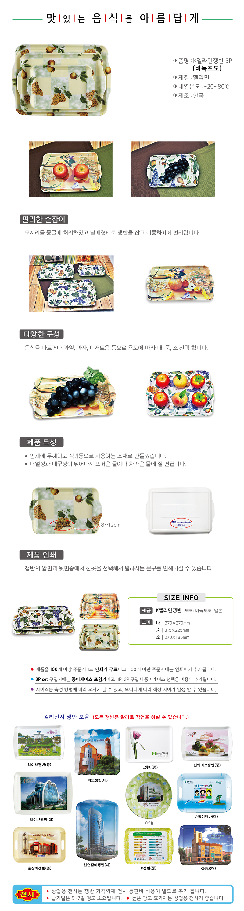 K멜라민쟁반(바둑포도) 3P