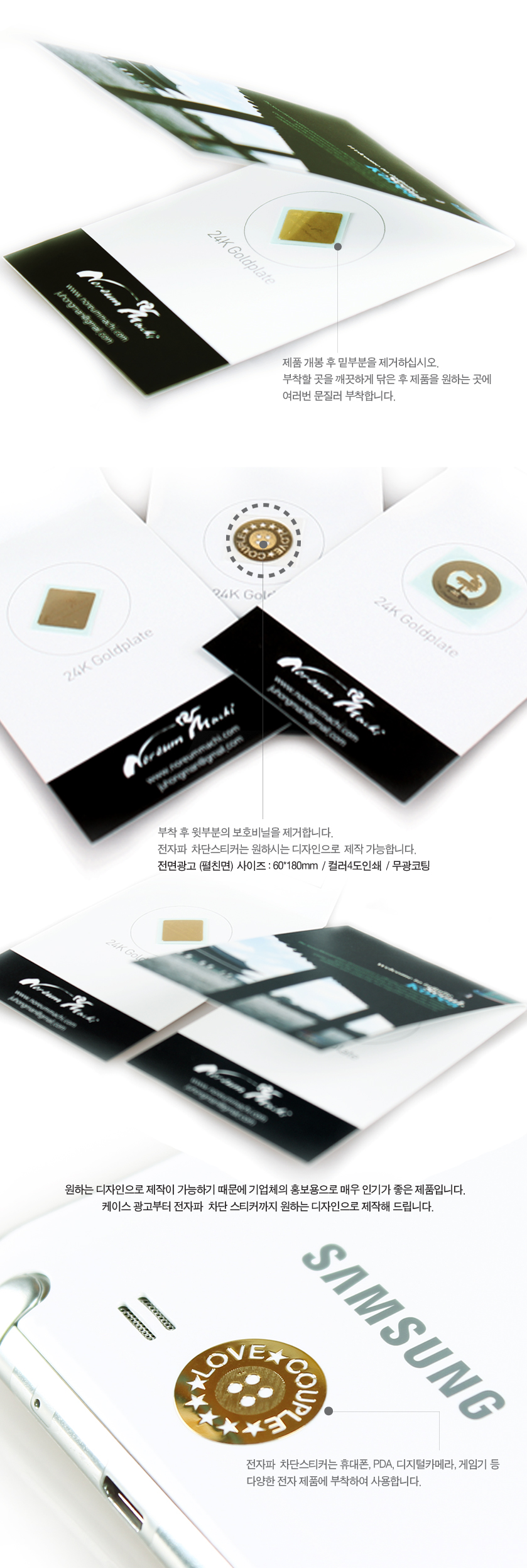 • 전자파스티커& 겉지 디자인 모두 원하는데로 인쇄 가능! (별도문의) 전자파스티커 기본 사이즈 15*15mm ( 사이즈 조정시 단가별도문의)