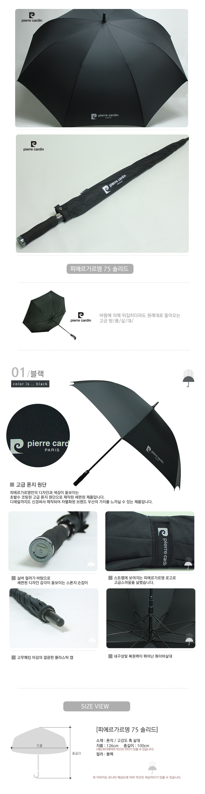 피에르가르뎅 75 솔리드 장우산