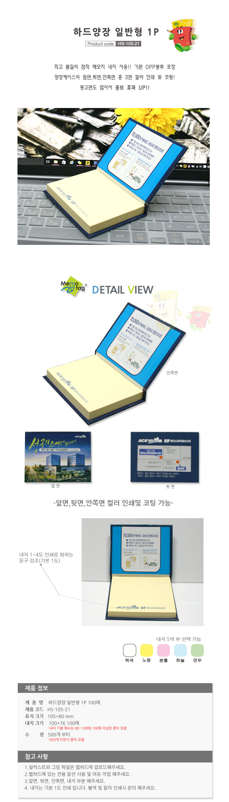 하드양장형 점착메모지 HS-105-21