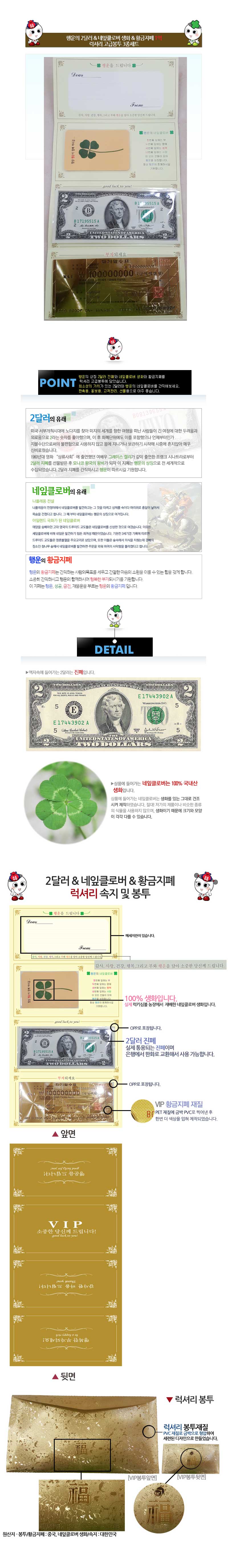 2달러&네잎클로버&황금지폐1억 럭셔리봉투