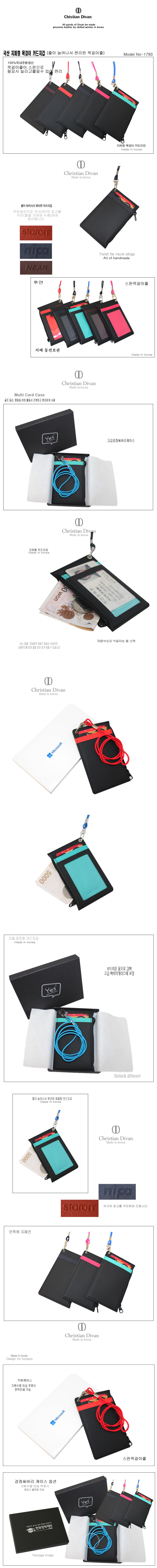 ◆국산100% 지퍼형 목걸이카드지갑(1793)◆-재질:인조가죽-원산지:100%국내제작-색상:블루,스카이블루,오랜지,핑크/브라운 -size:70*110mm -Printing size:50*50mm-인쇄:앞면또는 뒷면하단에 각인(열을 가하여 가죽을 누름)-구성:앞면카드칸 2개,뒷면 신분증또는 카드칸1개 .중앙에 지퍼(동전과 지페수납)