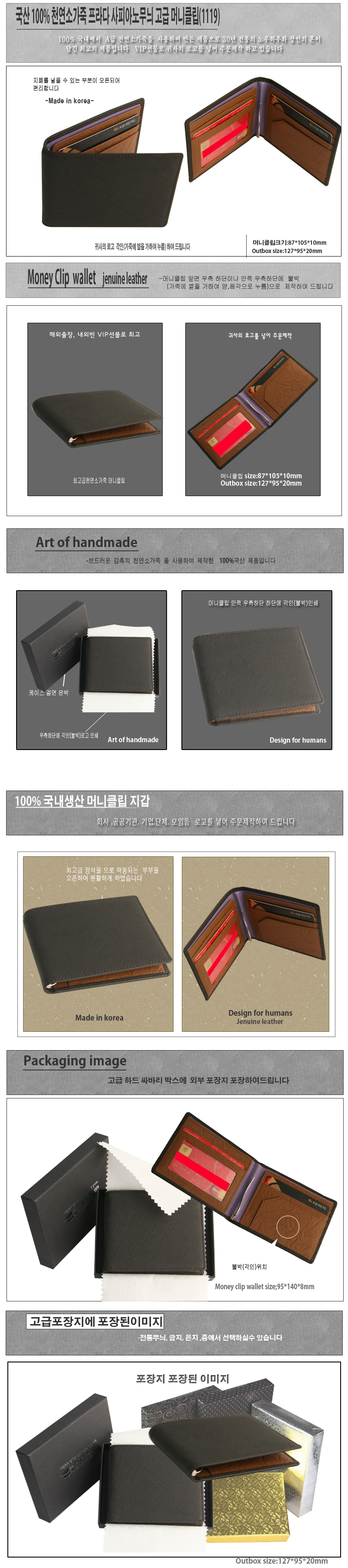 ◆ 국산100% 천연 양면 사피아노 소가죽 고급 머니클립(1119)◆