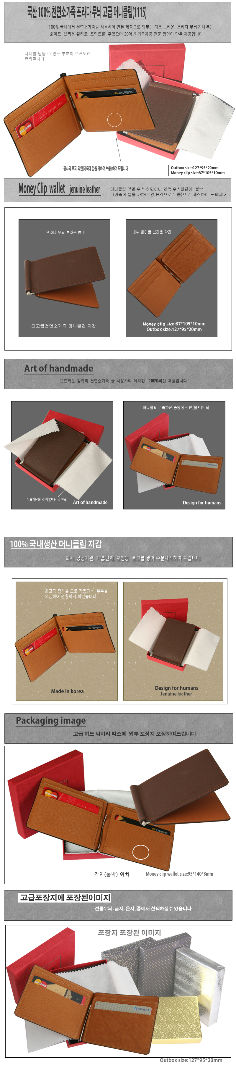 ◆100%국산 양면 천연소가죽 프라다 무늬 투톤 머니클립(1115)