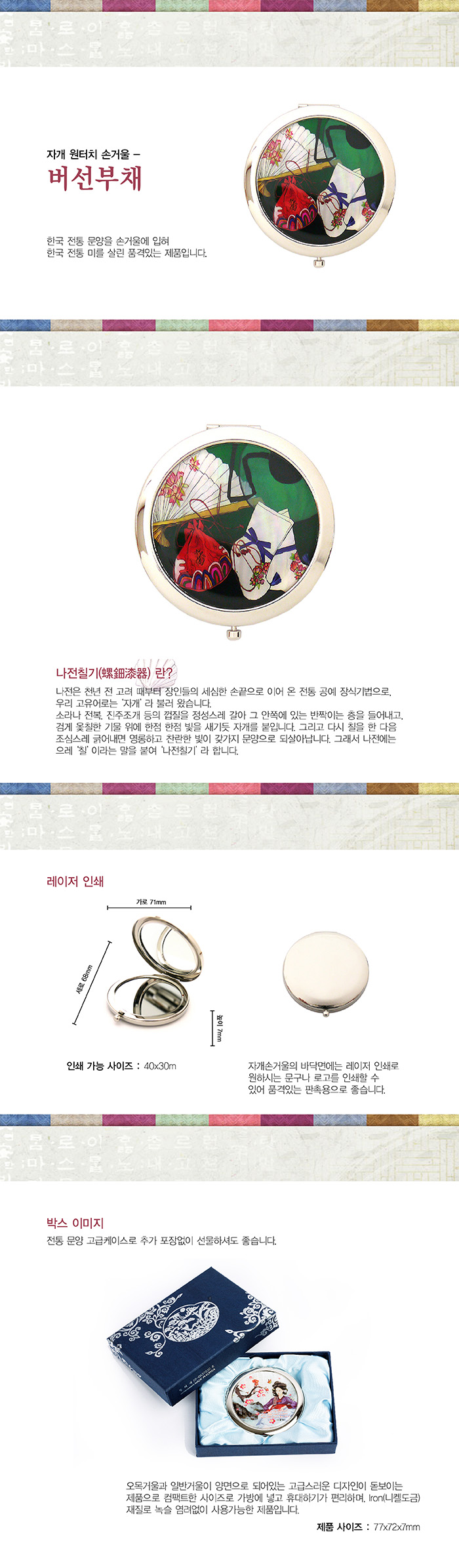 버선부채,원터치,원터치거울,원터치손거울,손거울세트,거울세트,휴대거울,휴대용손거울,손거울,손잡이손거울,나전칠기,예공,예공쉘크래프츠