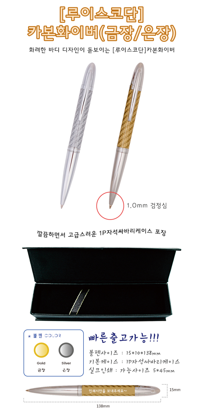 루이스코단의 은장식에 아크릴코팅의 무늬가 더해져 고급스러운 카본화이버볼펜