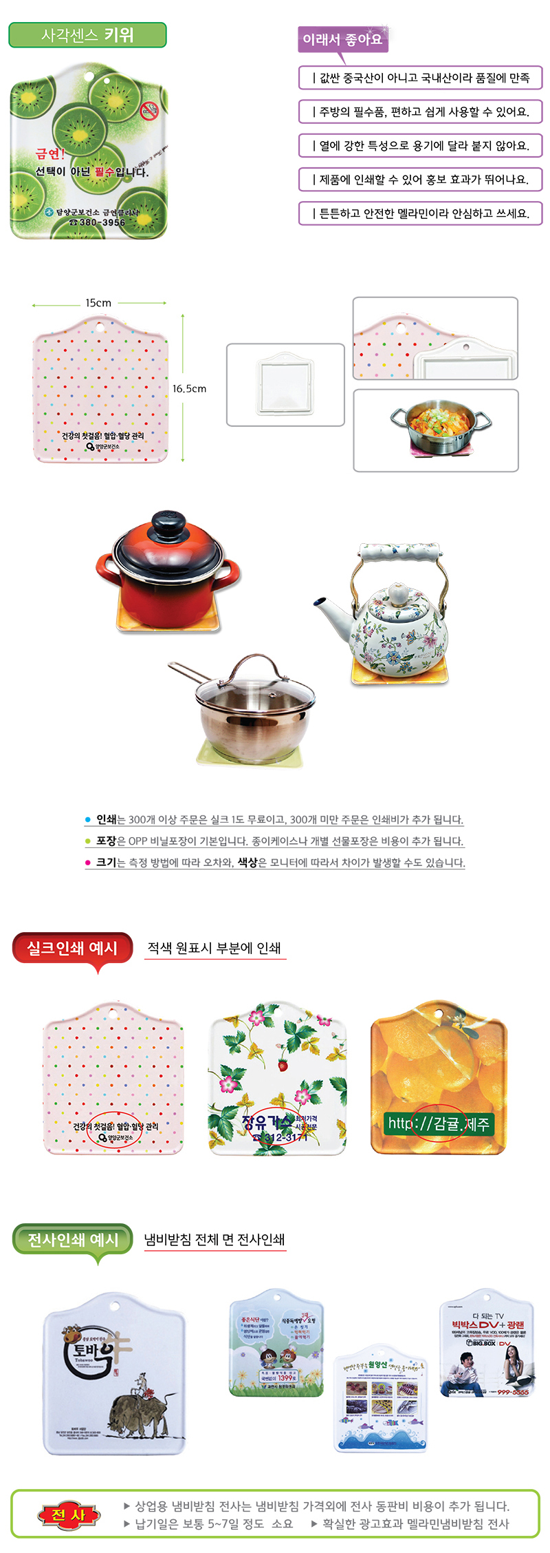 사각센스 멜라민냄비받침(키위)