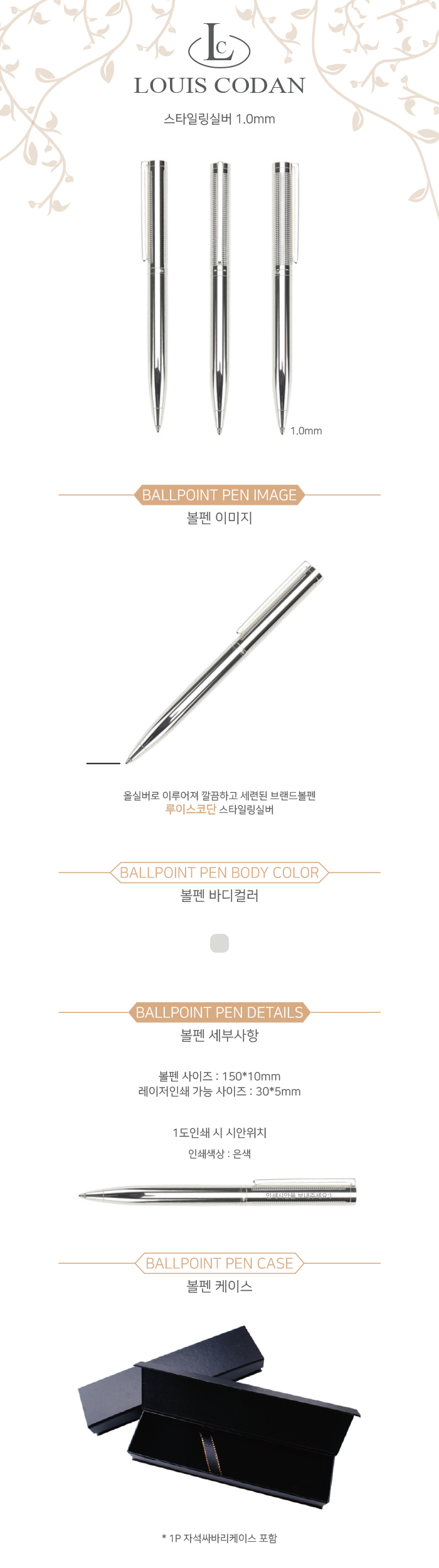 세련된 은색 메탈디자인이 멋스러운 볼펜