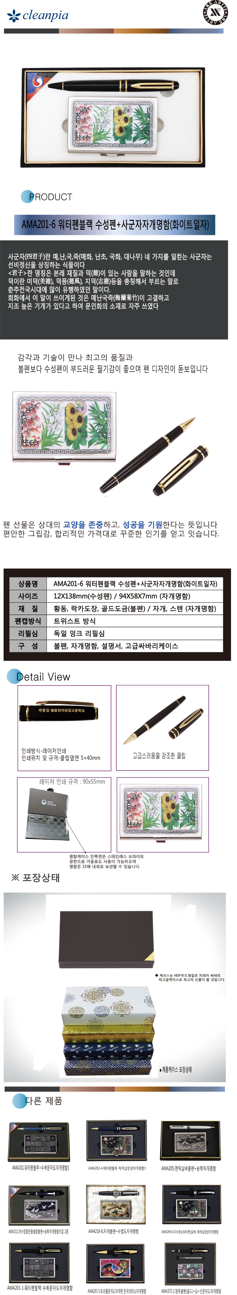 워터펜블랙수성+사군자자개명함(화이트일자)