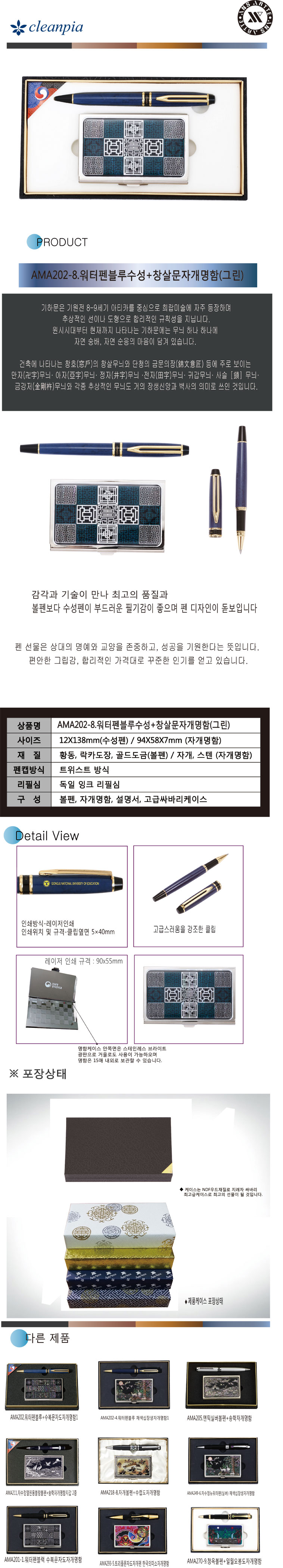 워터펜블루수성+창살문자개명함(그린)