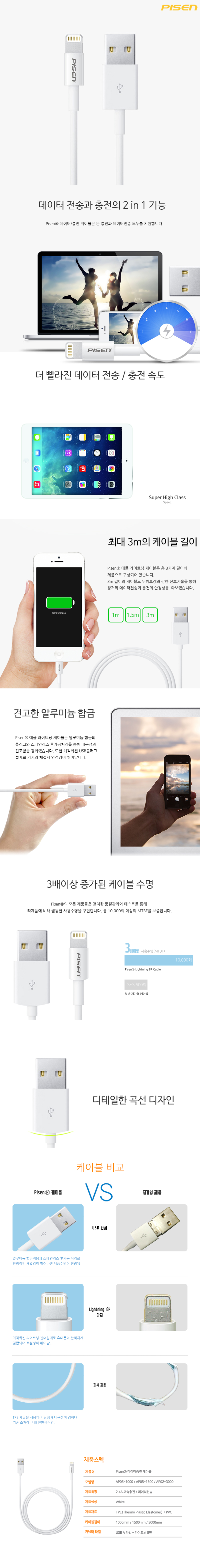 피센 라이트닝 데이터 충전 케이블 1.5M