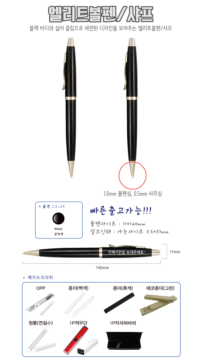 블랙바디와 실버클립으로 세련된 디자인을 보여주는 엘리트볼펜/샤프
