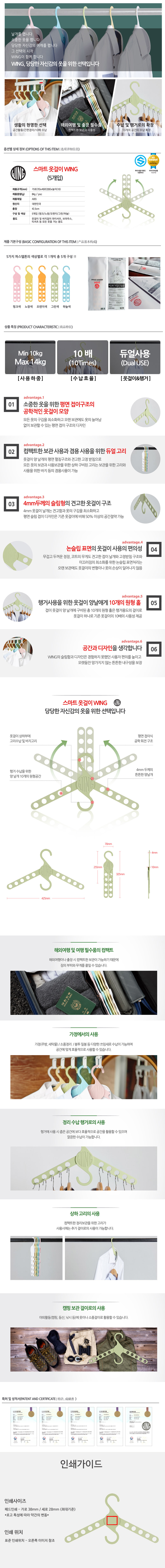 스마트 옷걸이 윙 [칼라5P]