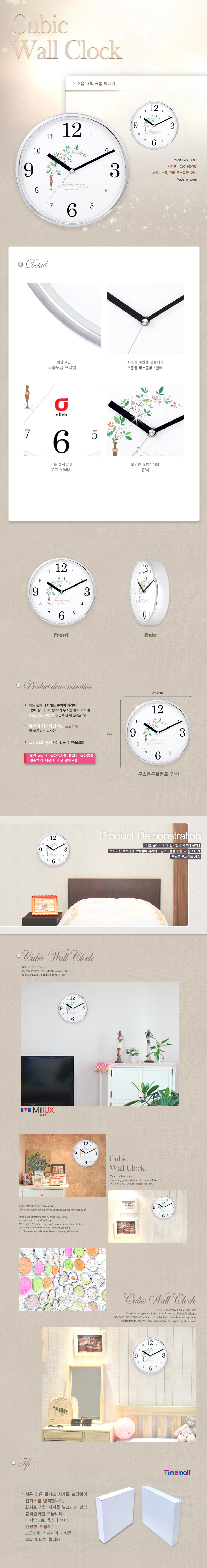 • 큐빅크롬무소음벽시계3290