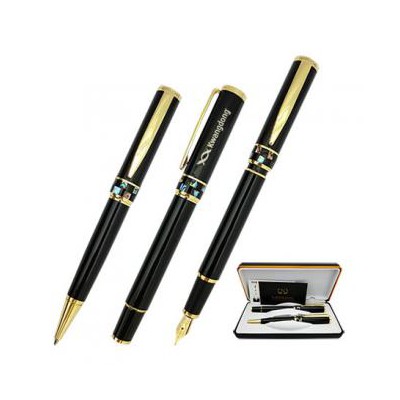 자개가 부착되어 있는 고급 볼펜과 만년필 세트제품입니다.