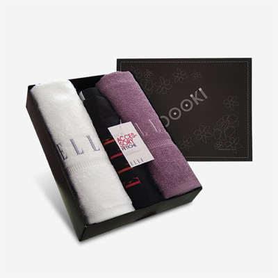 엘르 로즈타올2매+무지로고3단우산 세트