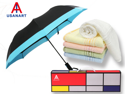 우산아트 2단폰지보다우산+마시멜로타월 세트