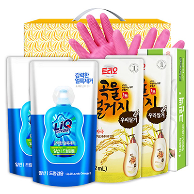 리큐300ml(리필)(액체세제)×2개/곡물설거지300g(리필)×2개/크린백50매/고무장갑32cm