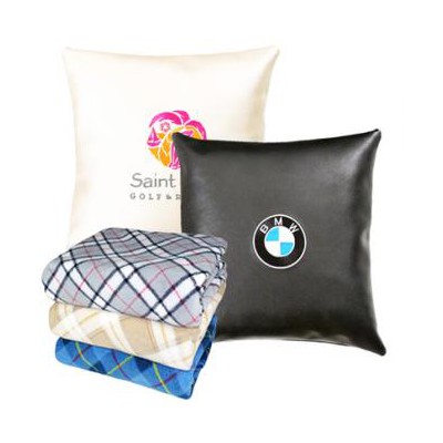 가죽후면쿠션+체크항공폴라양면담요