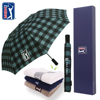 PGA 2단자동 체스블루+130g 면사타올 세트